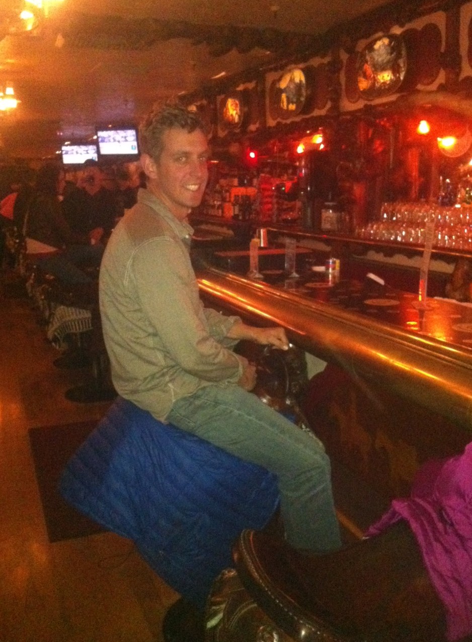 Cowboy Patrick saddled up to the Million Dollar Cowboy Bar. |