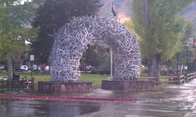 The nearby Elk Refuge provides supplies for five antler arches. |